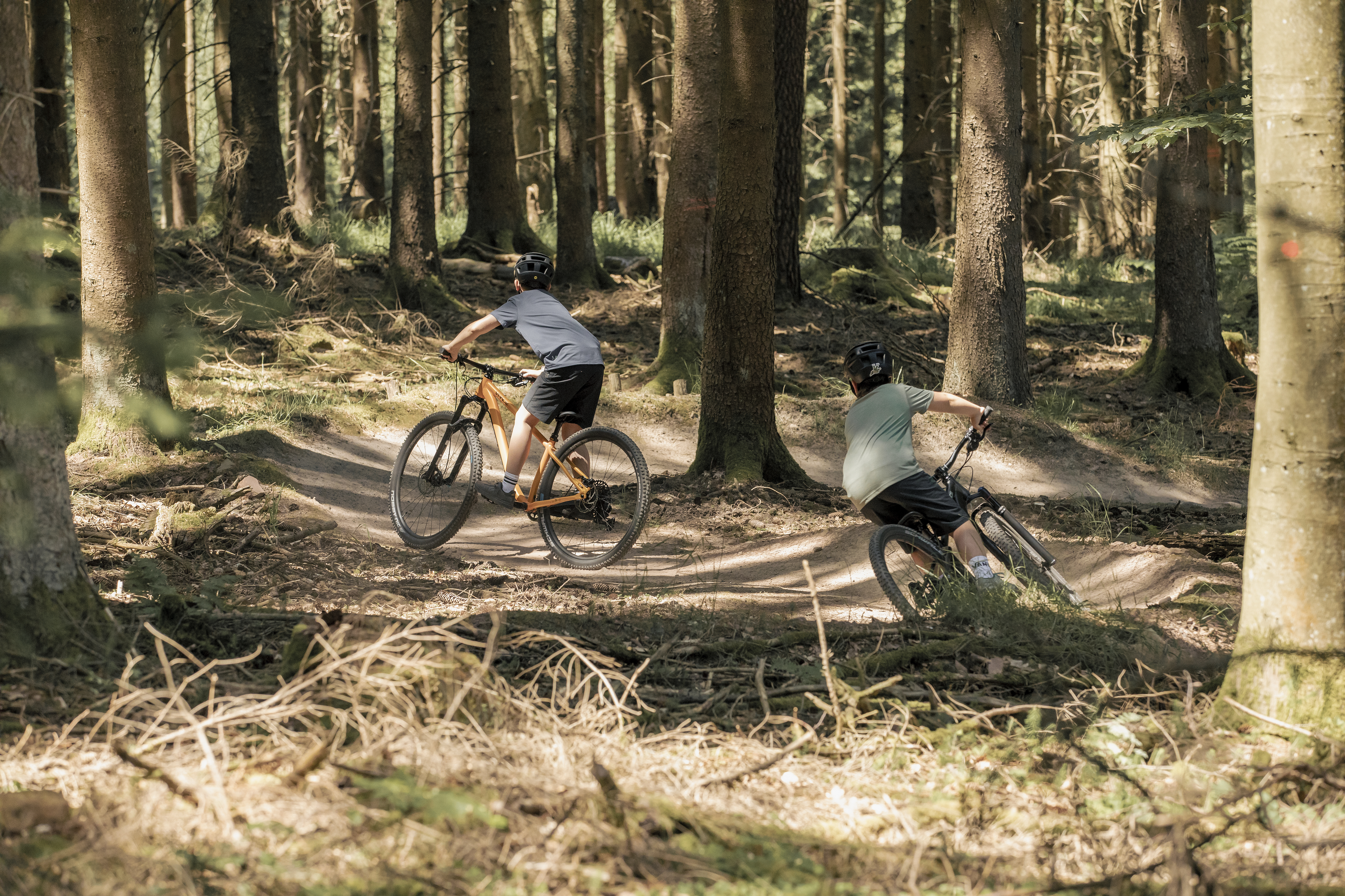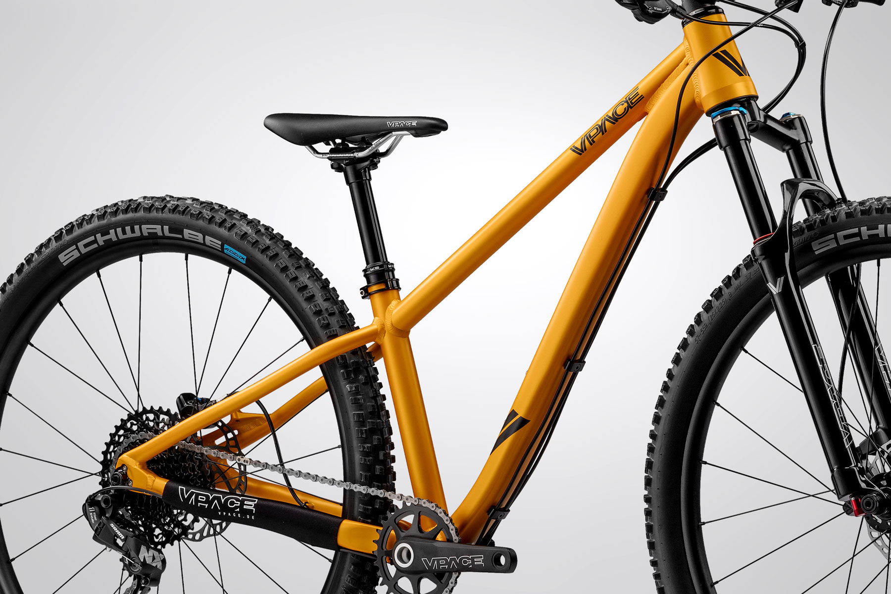 Beim VPACE 29er Prinzip setzen wir bei allen Modellgrößen auf große Laufräder. So kann beispielsweise ein Kind bei uns mit 130 cm Körpergröße bereits ein Matti26 mit 26 Zoll großen Laufrädern fahren. Bei anderen Herstellern hingegen wäre es ein 24 Zoll Rad. Warum das Sinn macht? Weil große Laufräder effizienter rollen, mehr Laufruhe bieten und Hindernisse leichter überrollen. In Verbindung mit den robusten und leichten Laufrädern profitieren junge Mountainbiker von einer deutlich höheren Effizienz und Fahrsicherheit auf dem Trail.