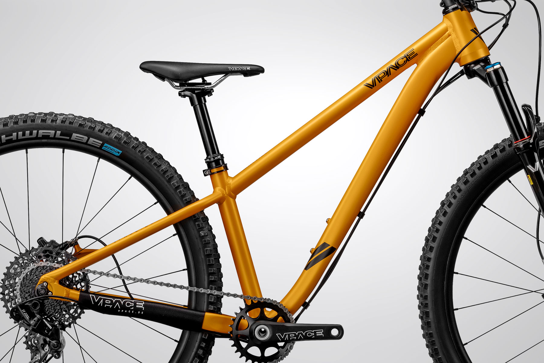 Beim VPACE 29er Prinzip setzen wir bei allen Modellgrößen auf große Laufräder. So kann beispielsweise ein Kind bei uns mit 130 cm Körpergröße bereits ein Matti26 mit 26 Zoll großen Laufrädern fahren. Bei anderen Herstellern hingegen wäre es ein 24 Zoll Rad. Warum das Sinn macht? Weil große Laufräder effizienter rollen, mehr Laufruhe bieten und Hindernisse leichter überrollen. In Verbindung mit den robusten und leichten Laufrädern profitieren junge Mountainbiker von einer deutlich höheren Effizienz und Fahrsicherheit auf dem Trail.